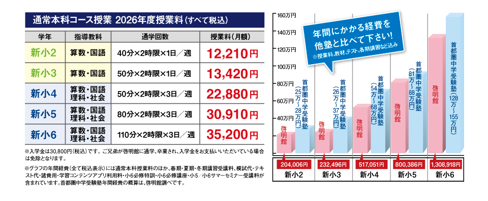 | 新小2~新小5 啓明館中学受験本科コース |